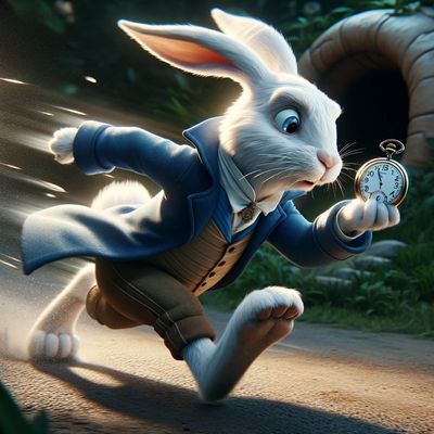"So she was considering in her own mind ... when suddenly a White Rabbit with pink eyes ran close by her. There was nothing so very remarkable in that; nor did Alice think it so very much out of the way to hear the Rabbit so to itself, "Oh dear! Oh dear! I shall be late!" (when she thought it over afterwards, it occurred to her that she ought to have wondered at this, but at the time it all seemed quite natural); but when the Rabbit actually took a watch out of its waistcoat pocket, and looked at it, and then hurried on, Alice started to her feet, for it flashed across her mind that she had never before seen a rabbit with either a waistcoat pocket, or a watch to take out of it..." -- Alice in Wonderland